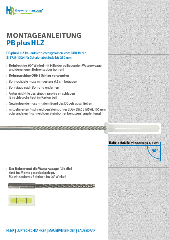 The first Plug cavity wall tie approved by DIBT for the substrates of aerated concrete and Poroton (vertically perforated brick) Z-21.2-1732